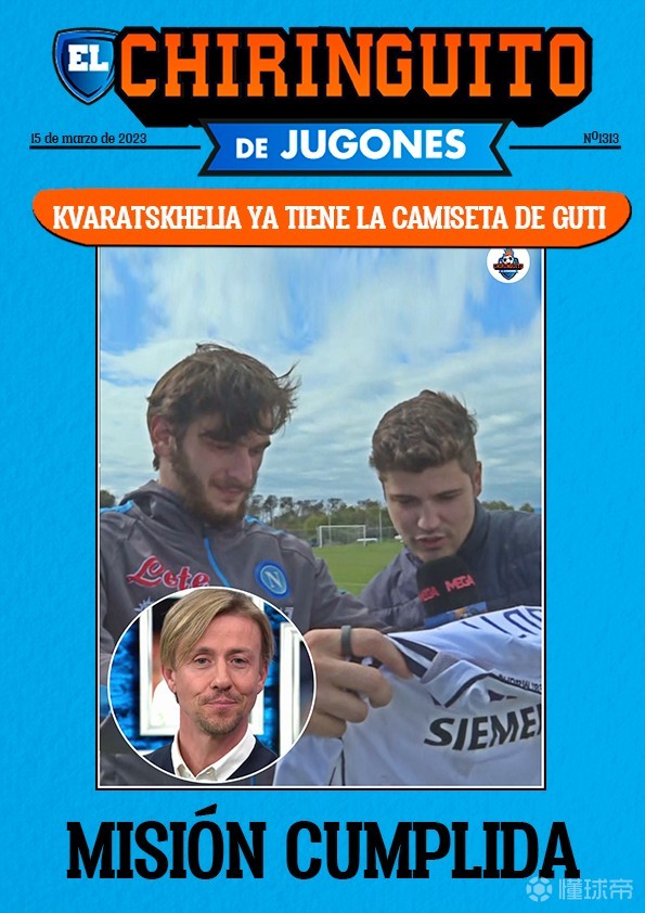 在欧冠1/8决赛次回合比赛前,西班牙六台节目派人前往那不勒斯,将古蒂签名的皇马14号球衣送到克瓦拉茨赫利亚手中。
