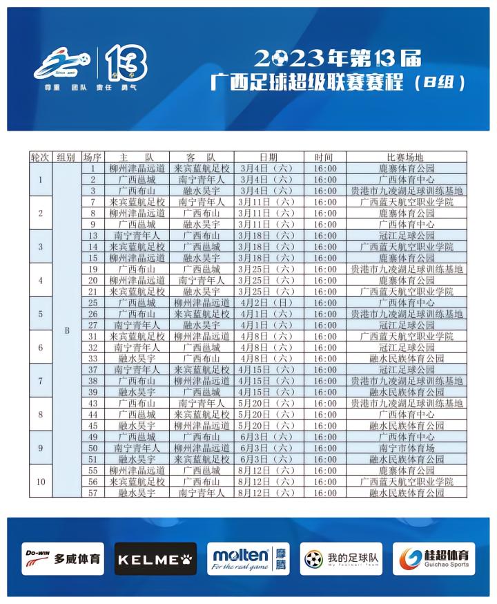 2023年第13 届广西足球超级联赛(桂超联赛),由中国足球协会指导,广西体育局和广西足球协会主办,广西桂超体育投资有限公司运营,桂超联赛已成功举办12届,是广西最高水平的足球赛事,俱乐部享有赛事极高的决策权和话语权,成为国内赛事中的亮点。本赛季继续延续主客场赛制外,5月中旬起还继续在桂超联赛期间,穿插进行两回合淘汰赛制的广西联盟杯赛事,本赛季周麟、凌小君、刘木成等知名教头加盟桂超俱乐部担任主教练,加上卢琳等前中超球员加盟,球队继续吸引全国球迷目光。