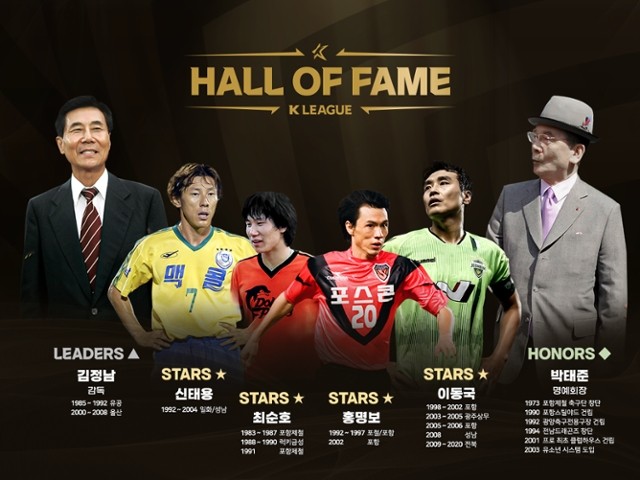 为纪念K联赛成立40周年,韩国职业足球联盟设立了K联赛名人堂,由球员(STARS)、教练(LEADERS)和杰出贡献者(HONORS)3个部分组成,计划从2023年开始,每隔两年选出名人堂成员。
