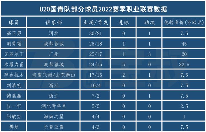 李昊、刘浩帆、胡荷韬、木塔力甫、艾菲尔丁这五名球员中,除了李昊外,其他4人均有中超出场经历,其中胡荷韬、木塔力甫、艾菲尔丁还是各自球队的绝对主力或主要轮换球员。一个赛季超过20场的职业比赛,给予了球员飞速的成长。