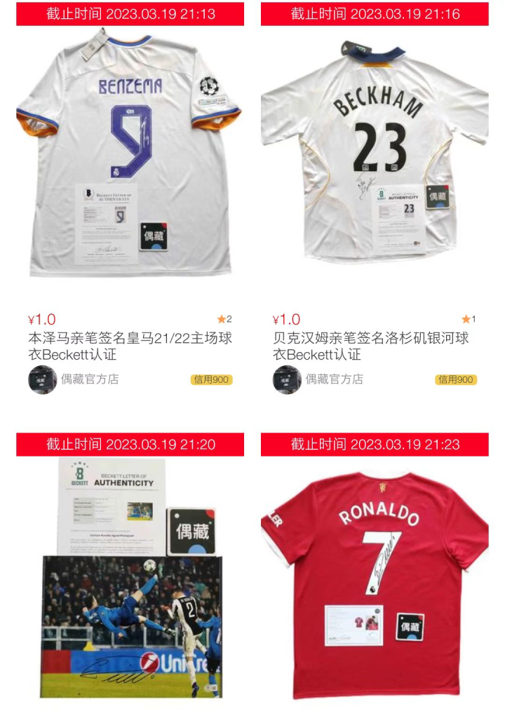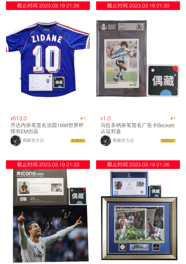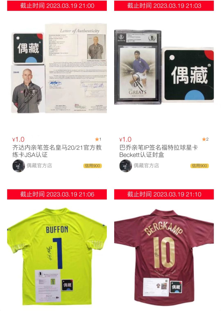 偶藏新一期官拍正在进行中,马拉多纳、齐祖、小贝、C罗、梅西、巴乔、本泽马等30件签名好物全部1元起拍。