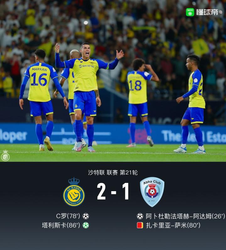 C罗任意球破门!利雅得胜利2-1逆转十人艾卜哈,塔利斯卡点射