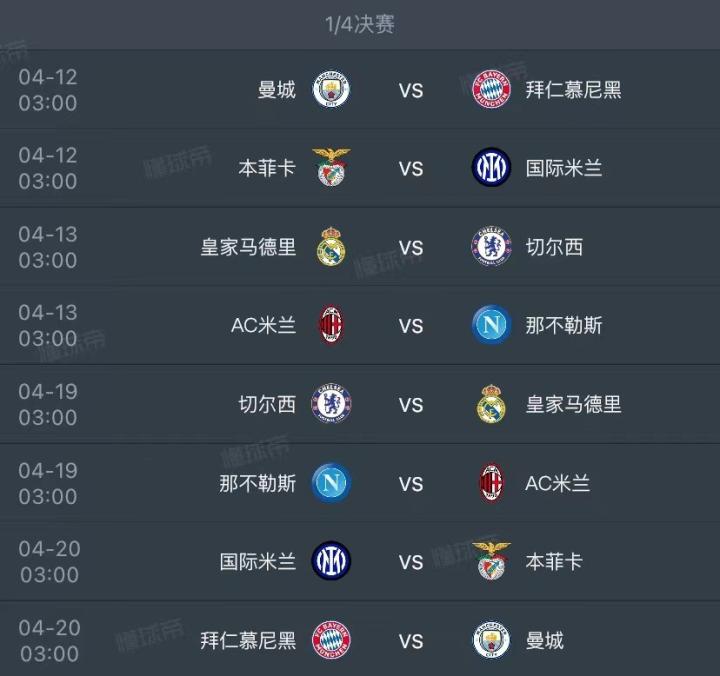 如果你在国内,那晚上看球时间就可以提前一个小时。欧冠进入精彩的八强争夺战,看球千万别记错时间了哦~