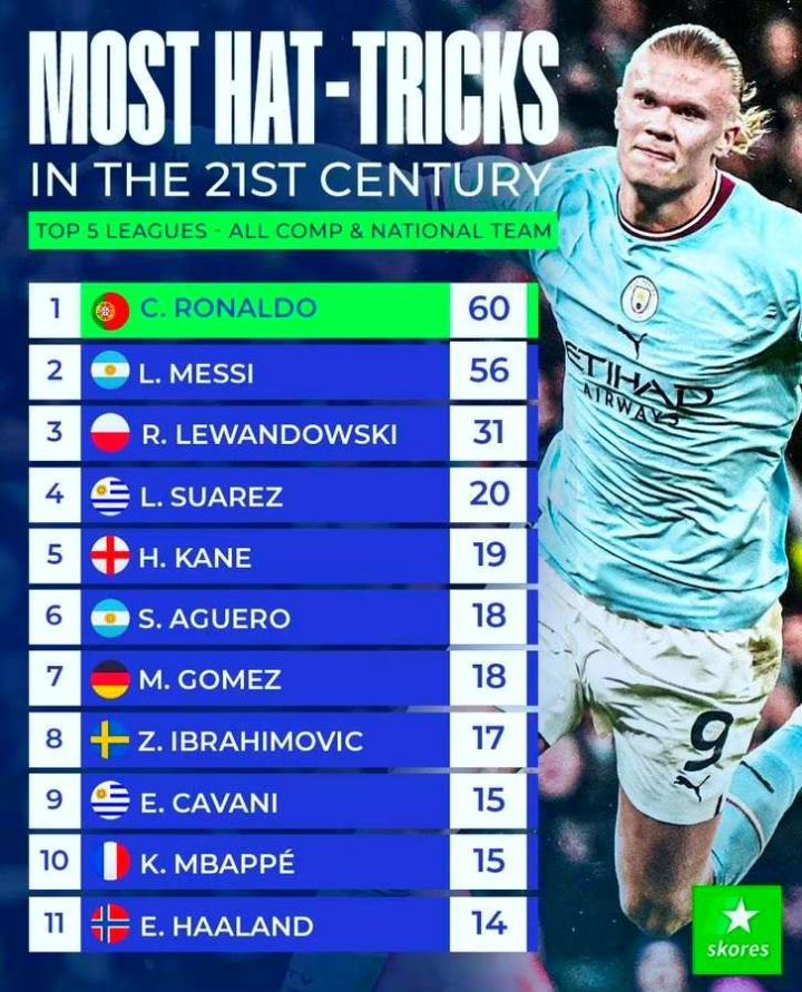 21世纪帽子戏法的球员排行,据统计,C罗60个排...天天向上Football @懂球帝2023-03-21 23:1321世纪帽子戏法的球员排行,据统计,C罗60个排名第一,梅西56个排名第二,哈兰德14个排名第十一。 22岁的哈兰德已经14个帽子戏法,哈兰德需要多久才能超越C罗?展开更多
