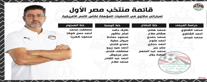 主教练、葡萄牙人鲁伊·维多利亚在去年7月接手埃及国家队。此次他选择了24人进入本次国际比赛日大名单。