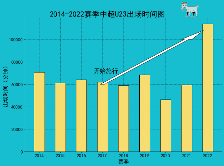 图三:2014赛季至2022赛季中超U23球员出场时间
