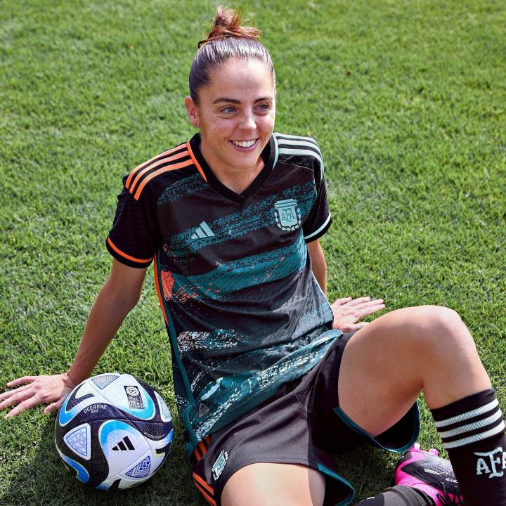 阿根廷女足的客场球衣为黑色搭配深绿的暗色调,并伴随有白色以及橙色的花纹点缀,第一眼看上去色彩或许有些凌乱,而其灵感来源也正是阿根廷境内以壮丽景色著称的乌马瓦卡谷。