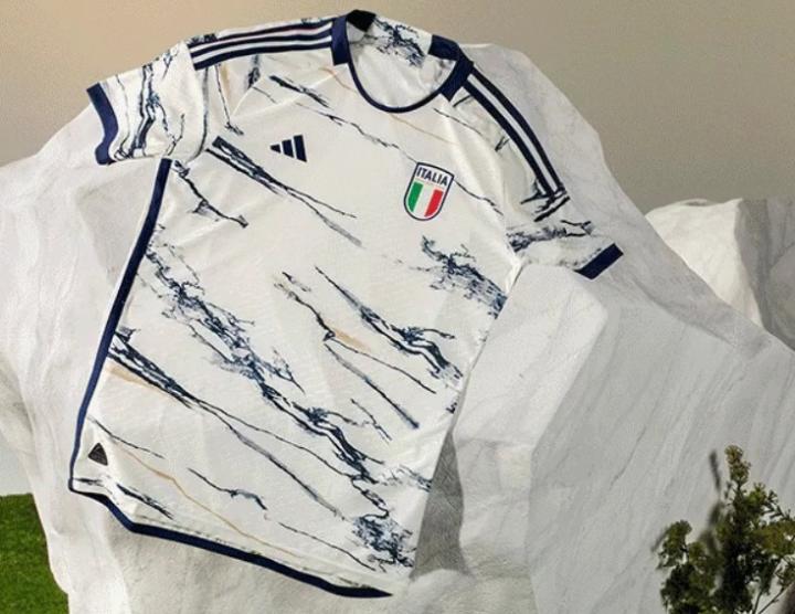 大概是作为“新客户”的缘故,意大利女足此次的客场球衣设计与男足完全相同,以白色作为底色,搭配深蓝色的类大理石纹路。
