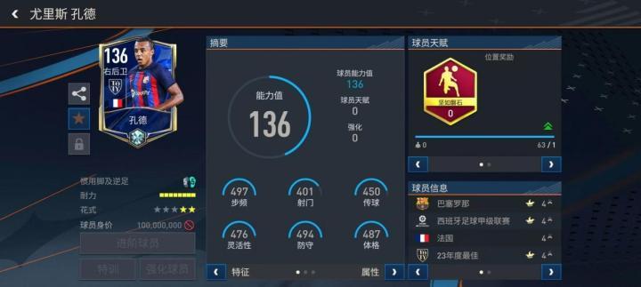 ○ 孔德是现役后卫中的传球大师。他有着顶尖级别的出球能力,精于球路梳理与向前威胁球传递。他身形虽然不高,但弹跳力不俗,是争顶的好手,在定位球战术中时有精彩发挥。
