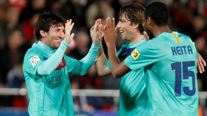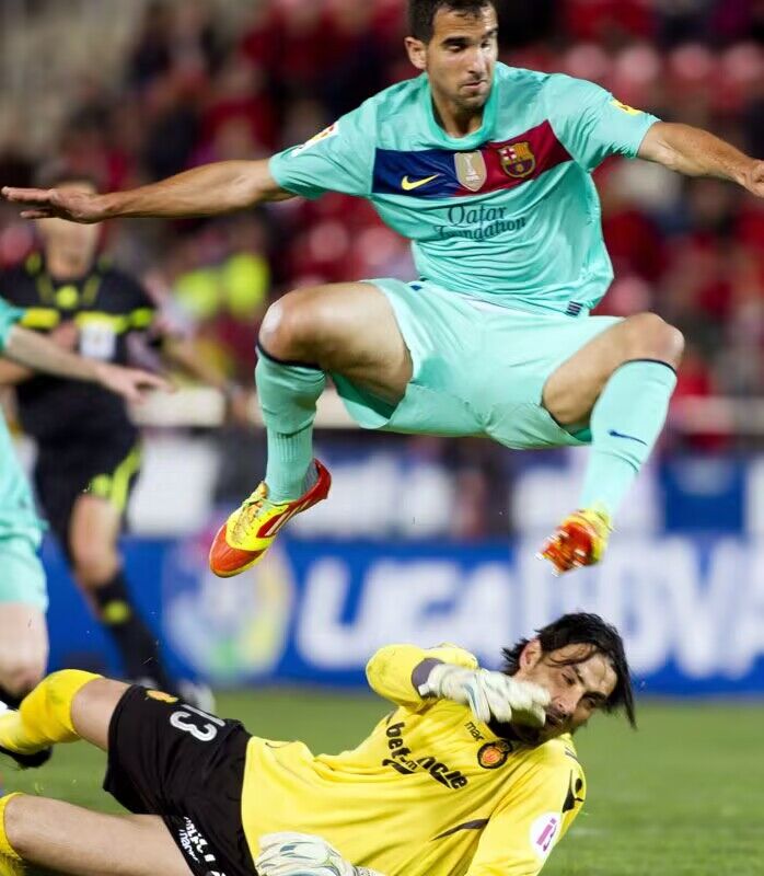 9、2012年3月24日,巴萨在西甲联赛第30轮客场2-0战胜马洛卡。梅西直接任意球破门,蒂亚戈染红离场,皮克终场前进球锁定胜局。