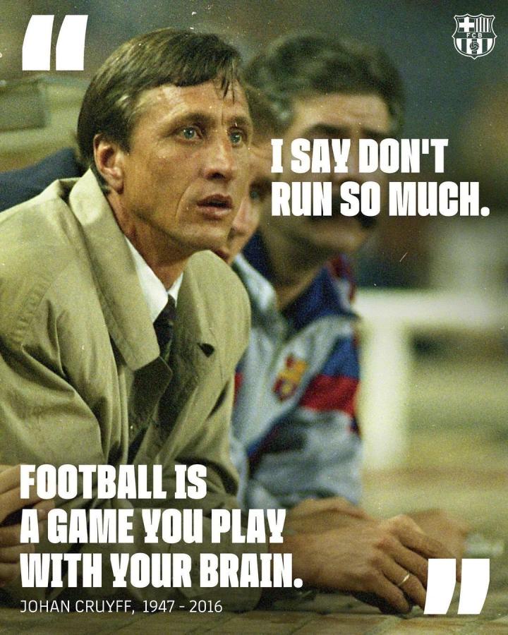 克圣名言,振聋发聩! “踢足球非常简单,但踢简单的足球却是最困难的事情。” “上场,并享受比赛。” “你可以一直进行比赛,但如果你不进球,你就无法获胜。” “无需太多无效跑动,足球是一项用大脑踢的运动。” “每个位置上都选择最好的球员,那么你得到的只是11名最强的球星,而不是一支最强的球队。” “踢得漂亮而输了球是没有意义的,但踢的丑陋却赢球是无聊的。” “在我的球队当中,进攻最先由门将发起,而防守最先由前锋开始。” “那些想成为领袖但并没有领袖气质的球员,往往在队友犯错后会予以怒斥;而球场上真正的领袖应该能够理解到:人人都会犯错。” “什么叫速度?体育媒体们经常会将速度和洞察力混为一谈。举个例子,如果我比别人早一点起跑,那看上去我的速度就更快。” “我们为什么不能打败一支土豪球队呢?我可从来没见过一袋钞票能在场上进球的。”