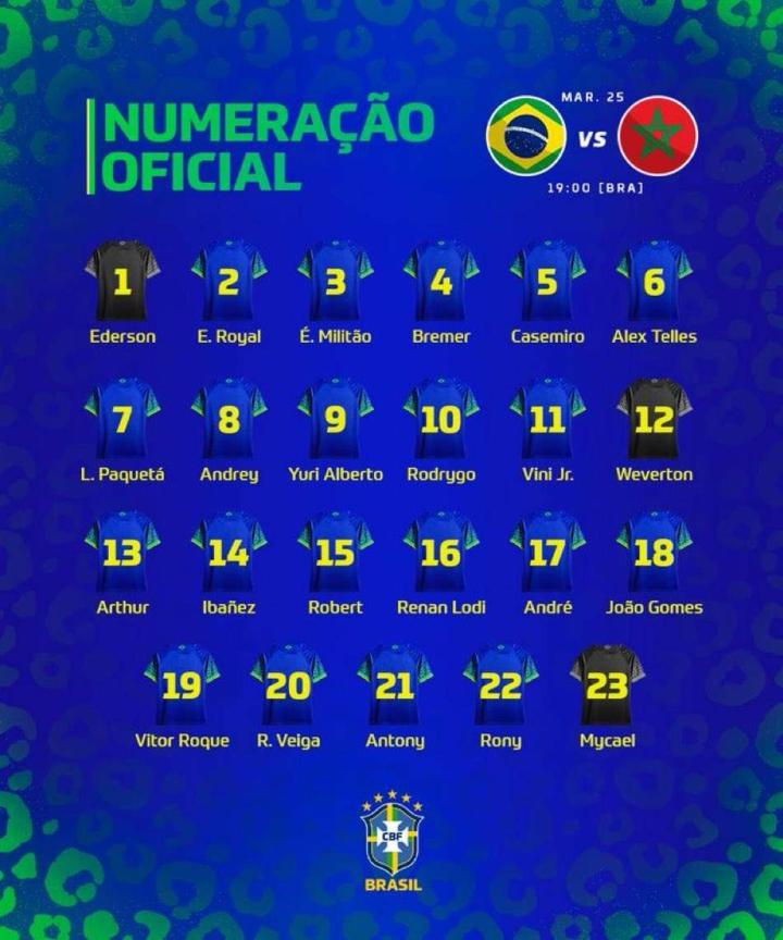 巴西国家队本次国际比赛日球衣号码公布:效力于皇家...Mr_Orangeee @懂球帝2023-03-25 22:13巴西国家队本次国际比赛日球衣号码公布: 效力于皇家马德里的巴西双子星维尼修斯和罗德里戈将分别身披11号和10号战袍。 他们会成为未来巴西前场的核心人物吗?展开更多