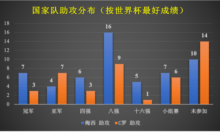 (图)梅罗在国家队助攻分布(按对手世界杯最好成绩)