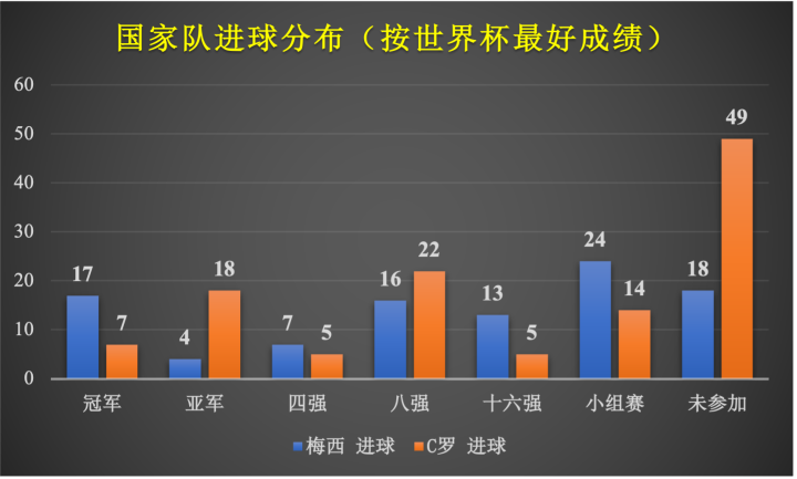 (图)梅罗在国家队进球分布(按对手世界杯最好成绩)