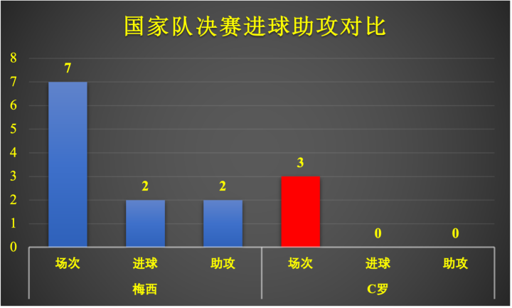 注:梅西参加的决赛为2次世界杯决赛、1次欧美杯决赛、4次美洲杯决赛;C罗为2次欧洲杯决赛、1次欧国联决赛