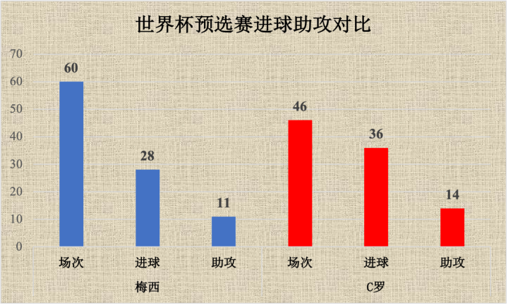 注:梅西为南美区预选赛;C罗为欧洲区预选赛