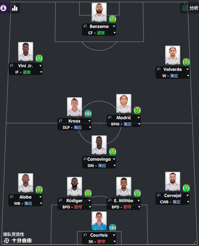 皇马首发阵容:阿拉巴伤愈复出