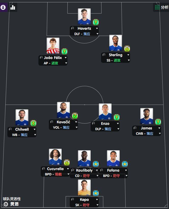 切尔西首发阵容:延续上场欧冠