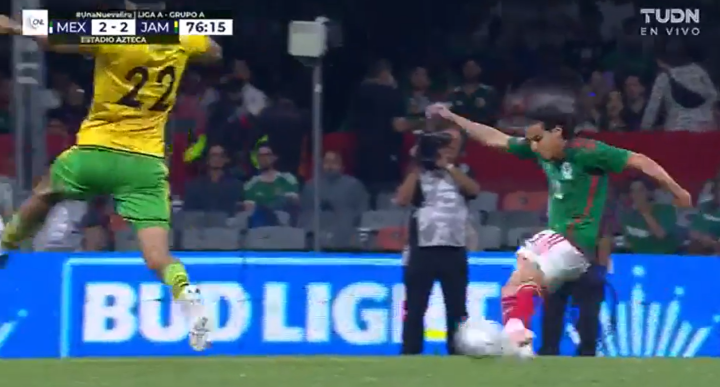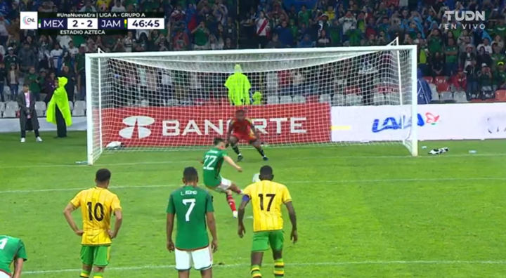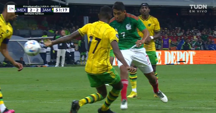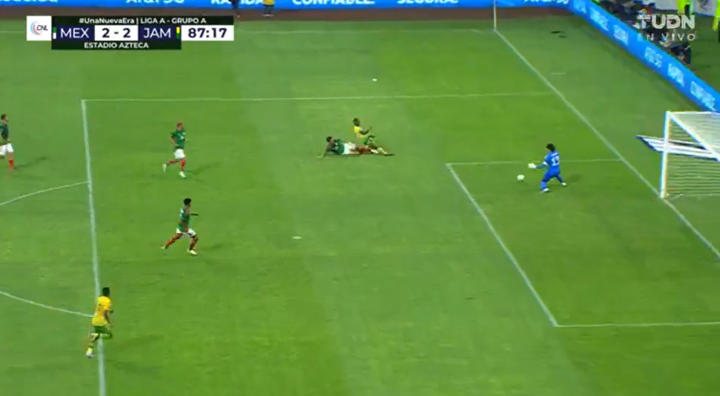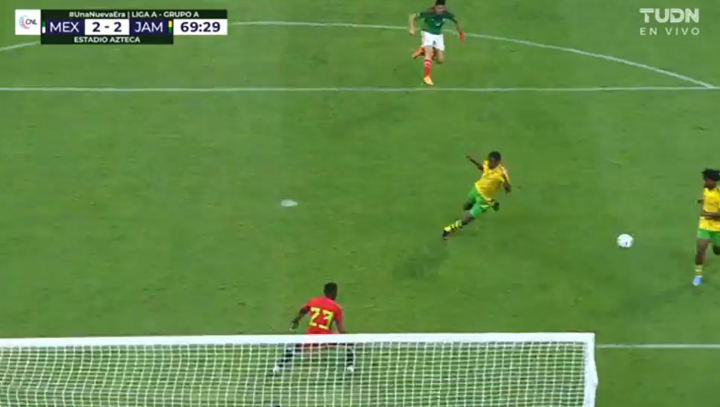 第32分钟,牙买加开出角球,11号尼科尔森故意一漏没有选择头球,反而是后点的埃德松·阿尔瓦雷斯没有反应过来,球打在他腿上弹进球门!奥乔亚对此毫无反应,牙买加2:1再次领先,把晋级中北美国联四强赛的命运再次掌握在自己手中!
