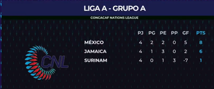最终,墨西哥在两度落后的情况下两度把比分扳平,2:2战平牙买加。墨西哥也以2胜2平的不败战绩排在AA组榜首,晋级今夏进行的中北美国家联赛四强赛。而牙买加屈居第2,也将在下赛季中北美国联继续征战A级别联赛。
