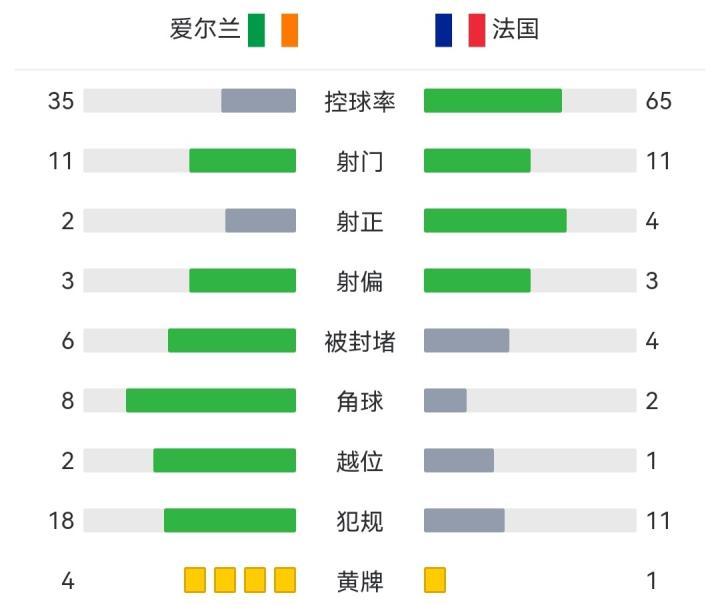 北京时间3月28日02:45,欧洲杯预选赛小组赛B组第2轮,法国作客英杰华体育场挑战爱尔兰,本场主裁判为阿图尔-迪亚斯。上半场,法国难破密集防守机会寥寥,格列兹曼头球攻门顶偏。下半场,寿星帕瓦尔重炮世界波一剑封喉,迈尼昂终场前神扑为球队守住胜果。最终,法国客场1-0小胜爱尔兰。