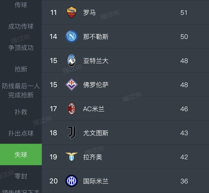 (2019/2020赛季意甲失球榜)