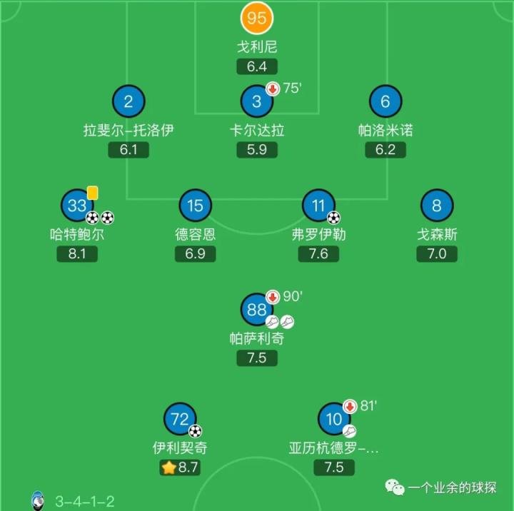 下图展示了2019/2020赛季亚特兰大的基本主力框架(包括常规替补和轮换球员),其实对于当赛季要征战欧冠赛场的“真蓝黑”来说,球队的整体阵容厚度并没有很深,对于一支需要多线作战的球队来说还是有点偏向于一套阵容打天下。
