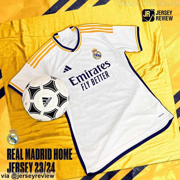 美凌格们满意吗? 皇家马德里23/24赛季主场球衣球迷版照片。