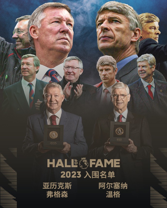 英超官方公布了2023年英超名人堂入选名单里的首批2名入选者,弗格森、温格入选名人堂。这是英超名人堂里首次有教练入选。