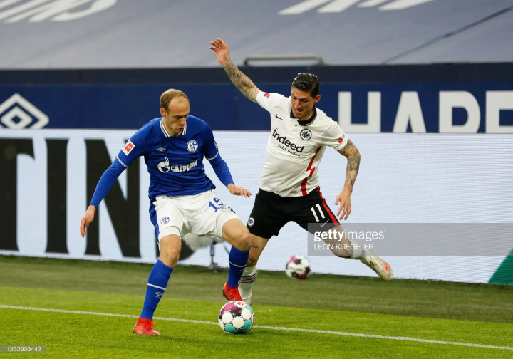 20-21赛季,马特里齐亚尼在加入沙尔克二队后,为沙尔克二队出战了30场地区联赛。而众所周知,沙尔克一线队在该赛季的德甲联赛上的表现堪称灾难,球队也毫无疑问赛季提前四轮降至德乙联赛。时任主帅格拉莫齐斯为了提前为德乙联赛做准备,在二队中提拔了部分青年才俊到一队,并在剩下的几轮德甲联赛中派上场,感受一下德甲的残酷。这批球员除了霍普、弗利克、艾丁这样的沙尔克青训出品,其中还包含着马特里齐亚尼的名字。在德甲第33轮对阵法兰克福的比赛中,马特里齐亚尼在比赛的第66分钟替补出场,完成了他职业生涯的首次顶级联赛亮相。