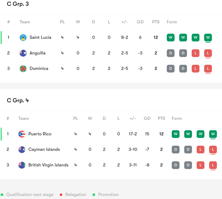 而晋级中北美金杯赛预选赛的球队有:AA组的苏里南、AB组的马提尼克、AC组的库拉索、AD组的格林纳达、BA组的瓜德罗普、BB组的圭亚那、BC组的特立尼达和多巴哥、BD组的法属圭亚那、CA组的荷属圣马丁、CB组的圣基茨和尼维斯、CC组的圣卢西亚、CD组的波多黎各。