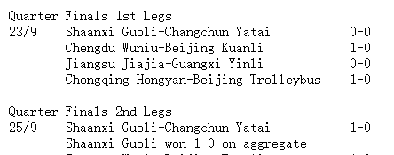 在之后的晋级赛中,陕西国力又以两回合总比分1:0击败了长春亚泰,打入了四强。