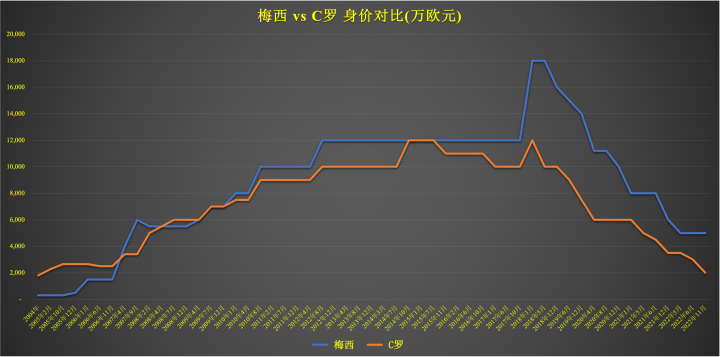 (图)梅西vsC罗历年身价