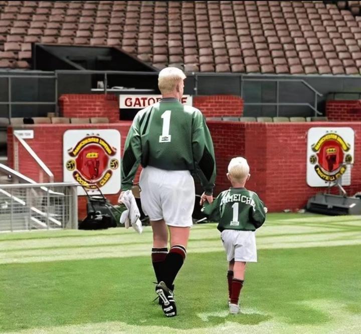 1992年舒梅切尔父子在老特拉福德 92年老舒梅切尔领着自己的儿子(卡斯珀·舒梅切尔)回更衣室的照片。一转眼三十多年了,更可怕的是,卡斯珀·舒梅切尔也到了职业生涯的后期。 老舒梅切尔作为曼联最出色的门将之一,帮助曼联夺得过英超冠军、英格兰足总杯、欧洲冠军联赛冠军,欧洲超级杯冠军等众多荣誉,同时也是丹麦国家队的主力门将,参加过1988、1992、1996、2000欧洲杯和1998世界杯。 卡斯珀·舒梅切尔虽然没有成为他爸在曼联的接班人,但是取得的荣誉也是很优秀的,最重要的是就是代表莱斯特城逆袭获得了15/16赛季的英超冠军,同时为莱斯特出场超过400场的英超比赛。同时也是丹麦国家队的主力门将,参加了,20欧洲杯,2018和2022世界杯。