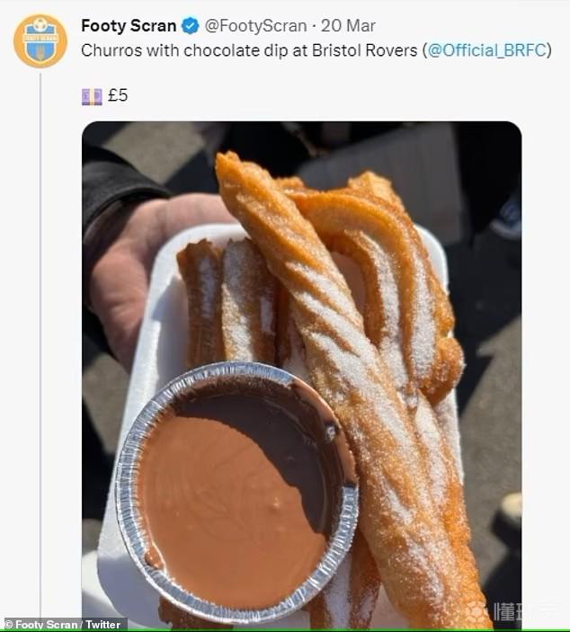 布里斯托流浪者队主场提供的西班牙油条加巧克力酱。