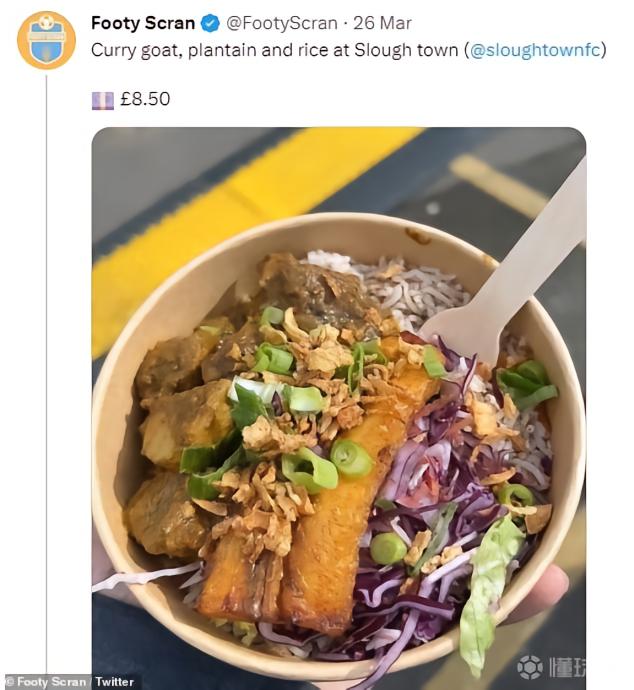 Slough Town主场出售的羊肉盖饭,售价8.5英镑。