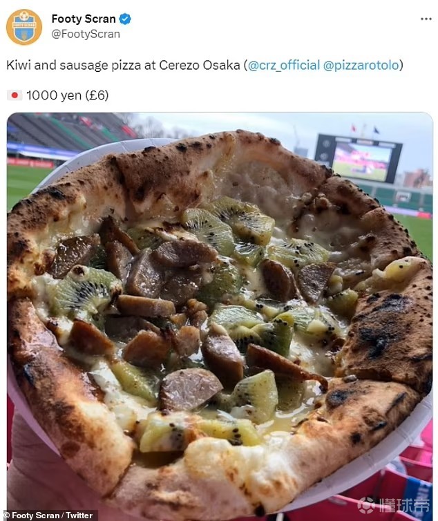 大坂樱花主场提供的猕猴桃披萨,球迷们对于它的评价有些两极分化,看起来面饼有些烧焦了。