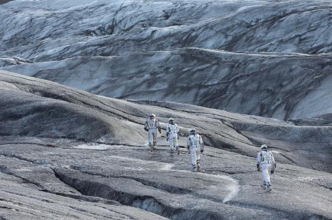 近未来的地球黄沙遍野,小麦、秋葵等基础农作物相继因枯萎病灭绝,人类不再像从前那样仰望星空,放纵想象力和灵感的迸发,而是每日在沙尘暴的肆虐下倒数着所剩不多的光景。在家务农的前NASA宇航员库珀(马修·麦康纳 Matthew McConaughey 饰)接连在女儿墨菲(麦肯吉·弗依 Mackenzie Foy 饰)的书房发现奇怪的重力场现象,随即得知在某个未知区域内前NASA成员仍秘密进行一个拯救人类的计划。多年以前土星附近出现神秘虫洞,NASA借机将数名宇航员派遣到遥远的星系寻找适合居住的星球。在布兰德教授(迈克尔·凯恩 Michael Caine 饰)的劝说下,库珀忍痛告别了女儿,和其他三名专家教授女儿艾米莉亚·布兰德(安妮·海瑟薇 Anne Hathaway 饰)、罗米利(大卫·吉雅西 David Gyasi 饰)、多伊尔(韦斯·本特利 Wes Bentley 饰)搭乘宇宙飞船前往目前已知的最有希望的三颗星球考察。