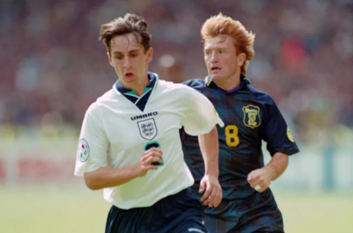 英格兰球员加里·内维尔曾担任右边后卫一职。由于他出色的防守能力和在球场上的领导才能,他被认为是足坛史上最优秀的右边后卫之一。内维尔的整个职业生涯都在曼联度过,并赢下了许多英超以及欧冠奖杯。同时他也是英格兰国家队成员,是2000年代黄金时代的关键球员。