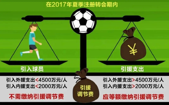 2017年6月,中国足协发布《关于2017年夏季注册转会期收取引援调节费相关工作的实施意见》,从该年夏季转会对外援身价超过4500万/人、内援身价超过2000万/人的球员转会收取“引援调节费”。
