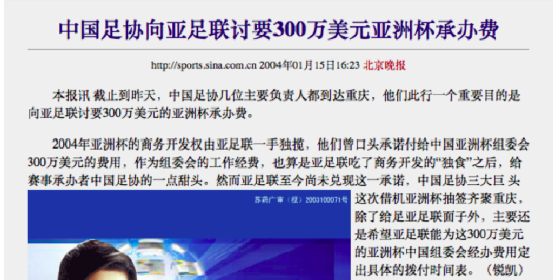 2004年中国亚洲杯的承办费是亚足联掏腰包
