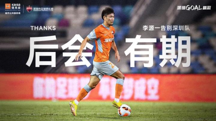深圳足球俱乐部官方宣布,队长李源一离队。