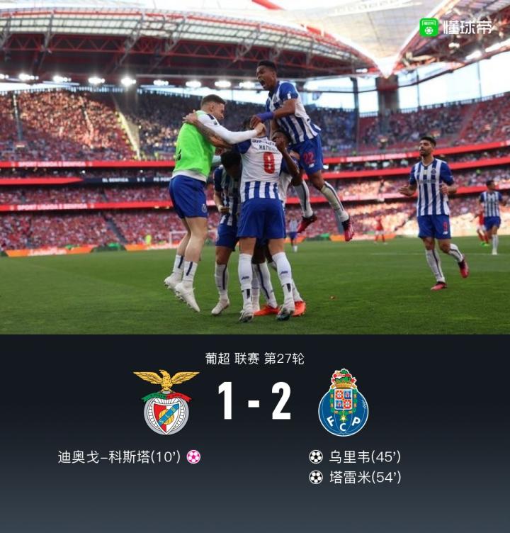 本菲卡1-2遭波尔图逆转,塔雷米、乌里韦建功,拉莫斯造乌龙