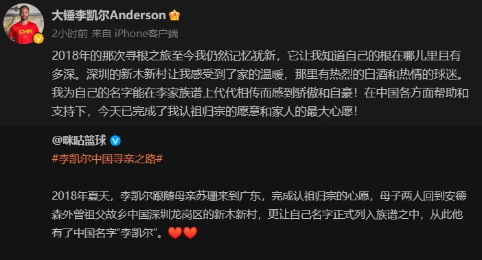 但显然,短短几天的寻根之旅,对于李凯尔来讲,意义绝对非凡,而这几天对于中国篮球的影响,也最终在5年以后得以体现。