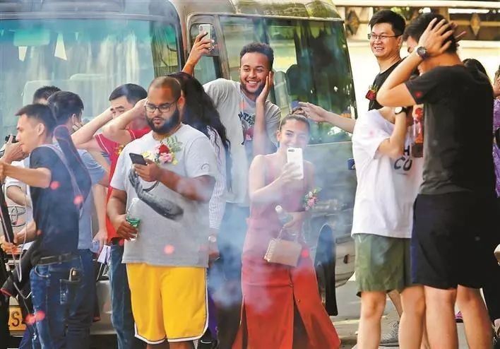 刚刚从中巴车上下来,安德森立刻被热情的族人团团围住,引导他前往比自己大40多岁的表哥李天平一家的庭院。现场可谓是锣鼓喧天,鞭炮齐鸣,红旗招展,人山人海,隔壁村的小孩子也挤过来看热闹,想见见这个2米多高的洋大个儿。