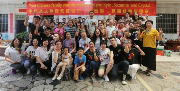 到了主庭,现场是一个超长的中英双语横幅:“中国亲人热烈欢迎凯尔、苏珊娜、克丽丝特尔回家”。作为安德森最为年长的表哥,一头白发的李天平向这位来自大洋彼岸、比自己晚出生了近半个世纪的表弟逐一介绍了族人,几位长辈和安德森的母亲苏珊娜都激动得掩面而泣。