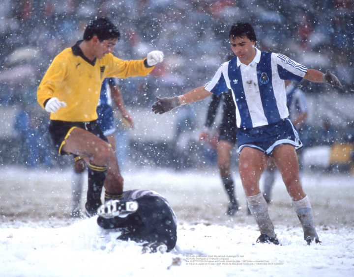 在寒风和大雪中,比赛开始,乌拉圭人被冻得瑟瑟发抖之际,还有一个难题就是队服的颜色。波尔图球员穿上了他们传统的蓝白相间队服,在大雪和大雾中,他们的白色和雪花以及雪地的颜色完全一样。