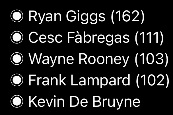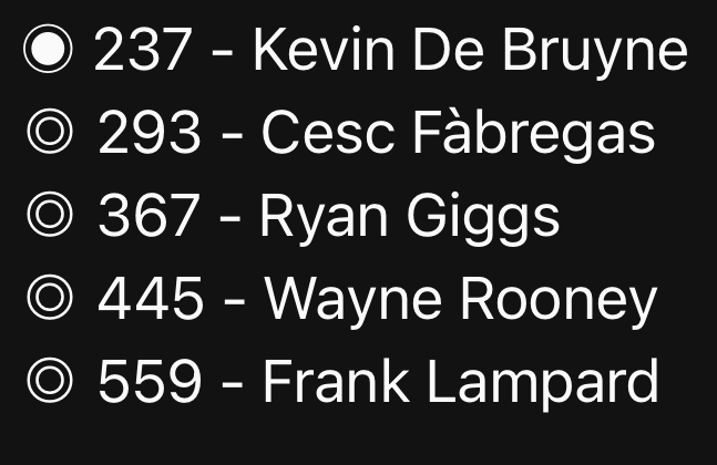 德布劳内打破前阿森纳,切尔西球员法布雷加斯的记录...北伦敦小酒馆 @懂球帝2023-04-10 13:29德布劳内打破前阿森纳,切尔西球员法布雷加斯的记录,成为英超最少场次完成100助攻大关的球员: 只有五人在英超中完成过百次助攻! 图2是助攻数,图3是完成100助攻的场次展开更多