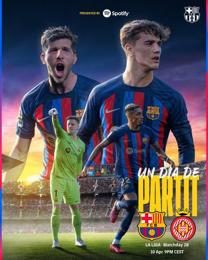 加泰德比日,巴萨官方发布战赫罗纳海报:加维领衔出镜ETChalmers @懂球帝2023-04-10 18:15西甲第28轮,巴萨将主场对阵赫罗纳,赛前,巴萨官方发布比赛海报。北京时间4月11日3:00,巴萨将坐镇诺坎普对阵赫罗纳,迎来加泰罗尼亚德比,巴萨队史西甲5次对阵赫罗纳保持不败。赛前,巴萨官方发布比赛海报,加维、拉菲尼亚、特尔施特根、罗贝托出镜,并配文:“加泰罗尼亚德比日!”目前,巴萨领先皇马12分,此役若取胜便可以将领先优势扩大至15分。展开更多