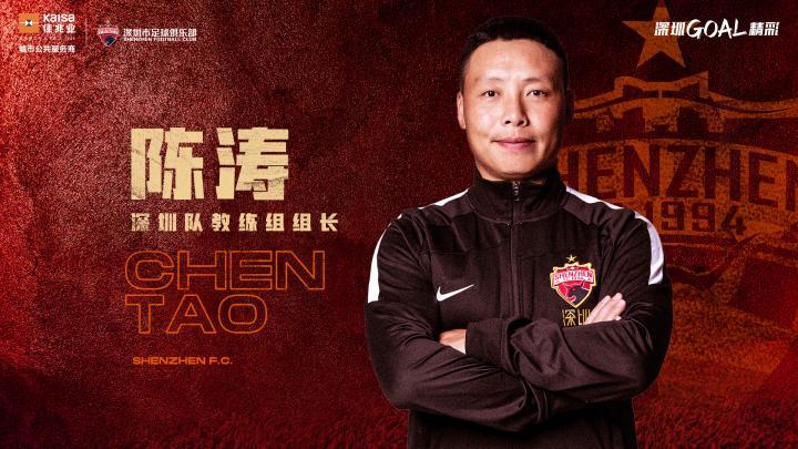 经深圳市足球俱乐部研究决定,即日起聘请陈涛先生担任一线队教练组组长。同时聘请向君先生、苑维玮先生、刘建业先生担任一线队助理教练,聘请关震先生担任一线队守门员教练。